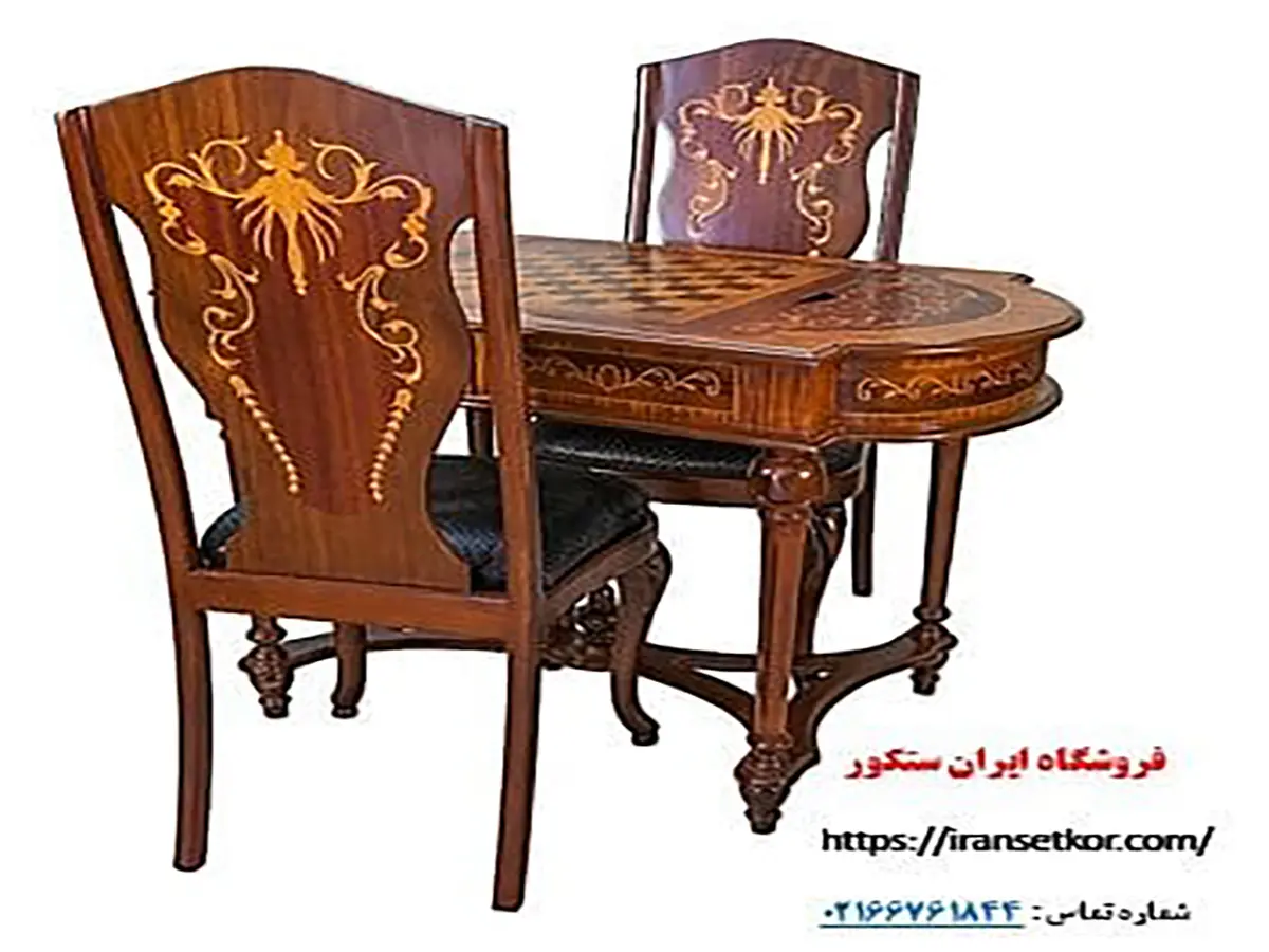 معرفی کلی میز و صندلی شطرنج و تخته نرد و منچ معرق کاری شده