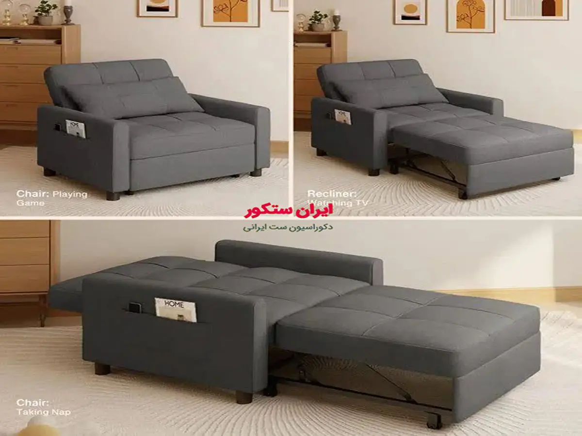 - قابلیت تبدیل به تخت خواب با کشیدن قسمت پایین مبل.